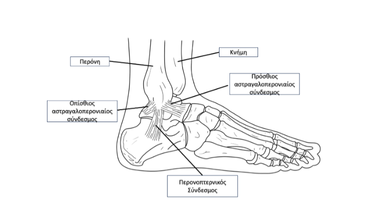 Η ποδοκνημική άρθρωση αποτελείται από 3 βασικά στοιχεία: το περιφερικό άκρο της κνήμης και της περόνης και τον αστράγαλο. Τα οστά αυτά συγκρατούνται μεταξύ τους από ένα σύνολο συνδέσμων, οι